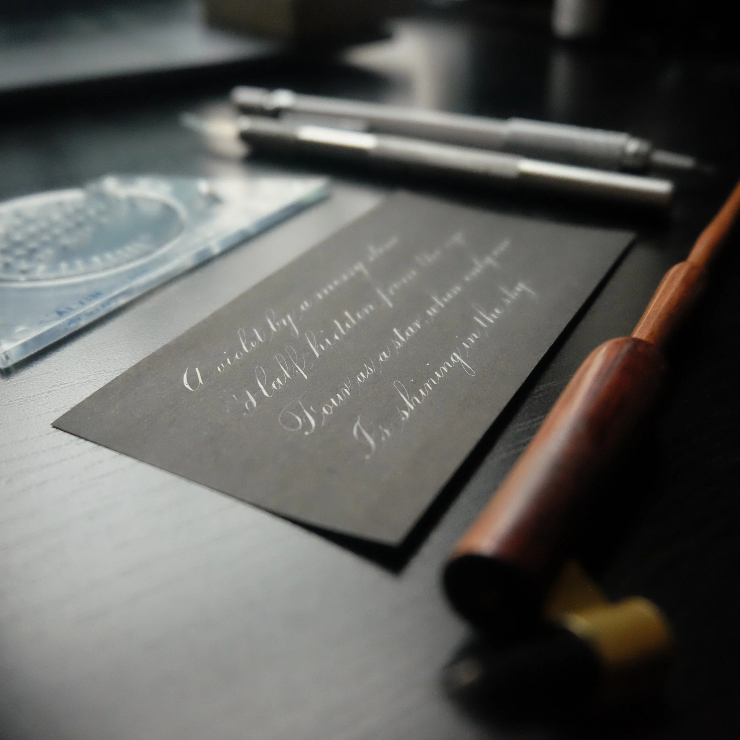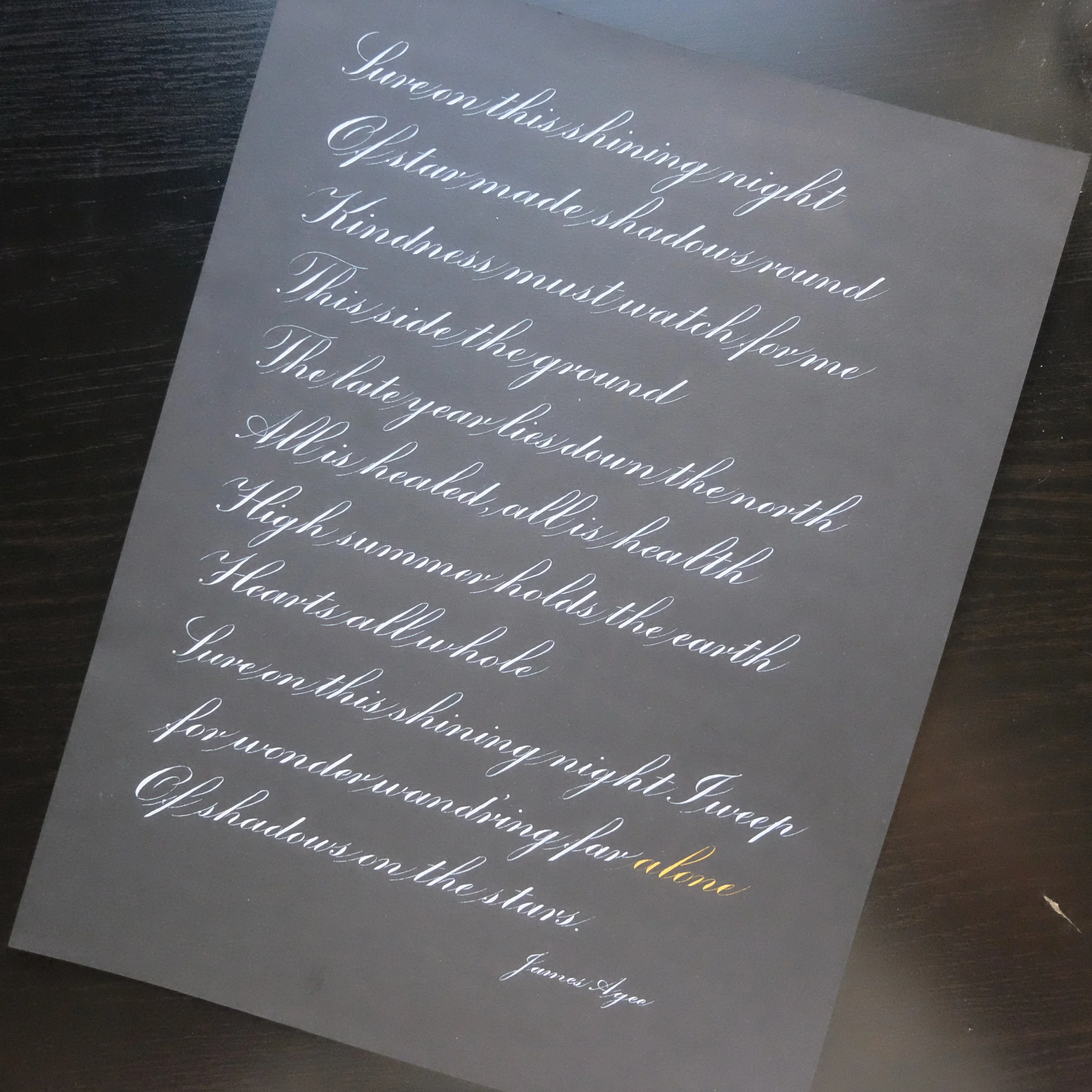 I have been practicing calligraphy since 2015 and have been working various scripts, particularly the more technical aspects of American Engrosser's Script. Along with blog commentary on creating a musical edition, I hope to periodically update with articles regarding the technique, practice and conception of calligraphic art forms and approach.